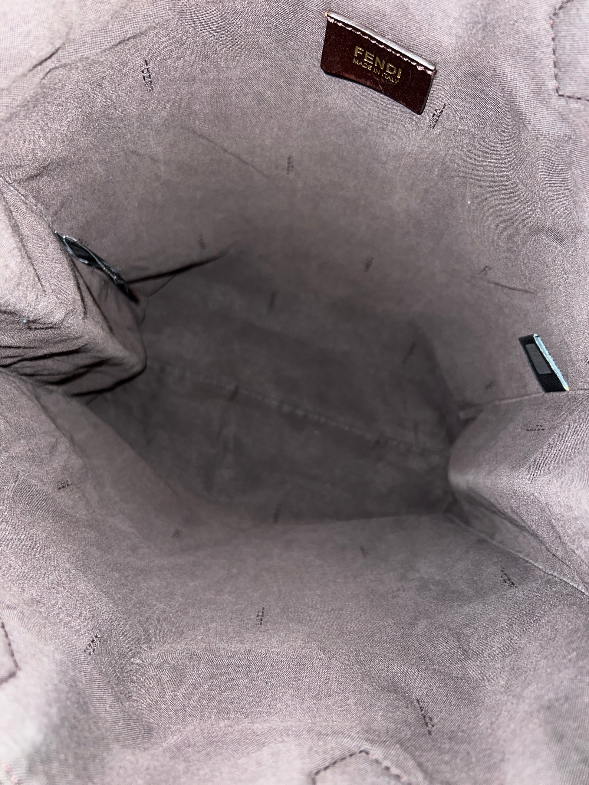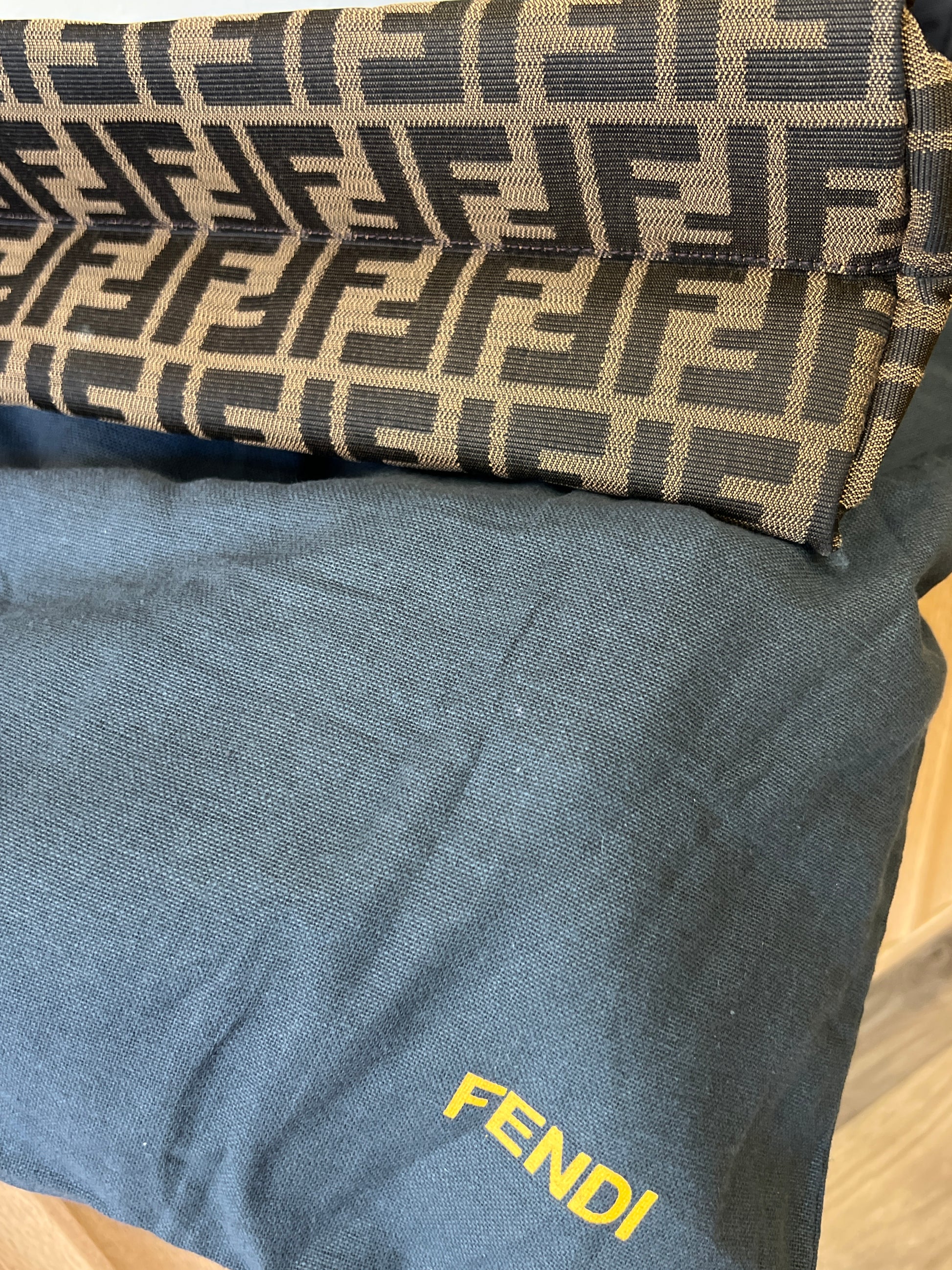 Borsa Fendi modello shopper in canvas marrone con iconico motivo monogram FF all-over e dettagli in pelle. Linea moderna e capiente, perfetta per chi cerca uno stile elegante ma funzionale, adatta sia per la quotidianità che per occasioni più sofisticate.